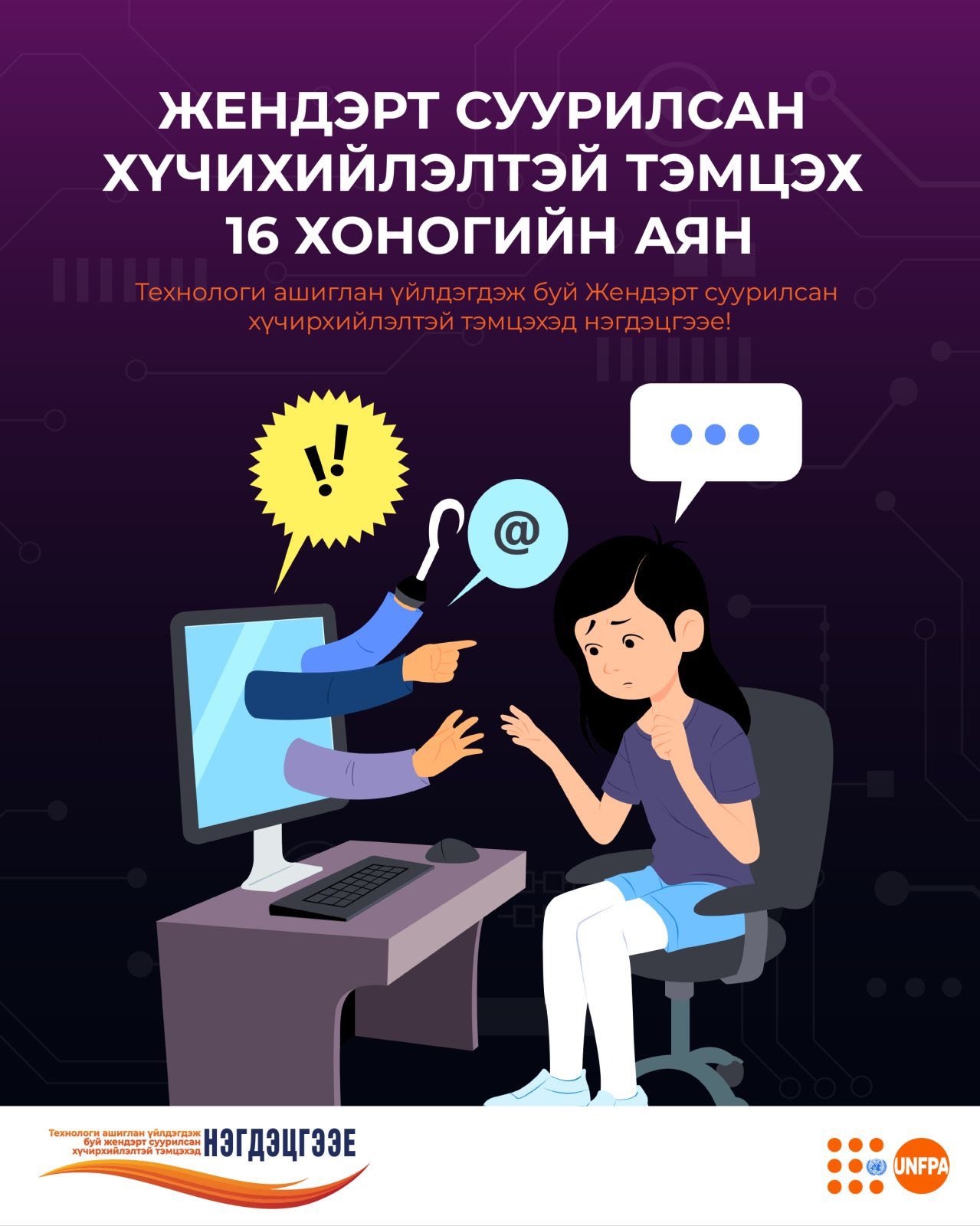 Технологи ашиглан үйлдэгдэж буй жендэрт суурилсан хүчирхийлэлтэй тэмцэхэд нэгдэцгээе!